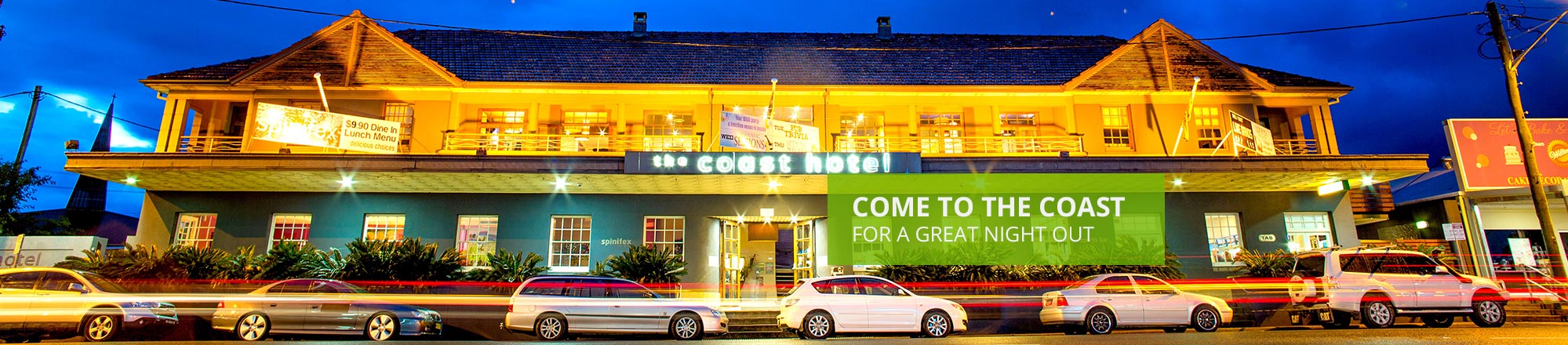 With live music very week, fully equipped TAB, KENO, pool tables, darts, trivia, social and sponsored local sports clubs… There’s always something happening at The Coast Hotel!
